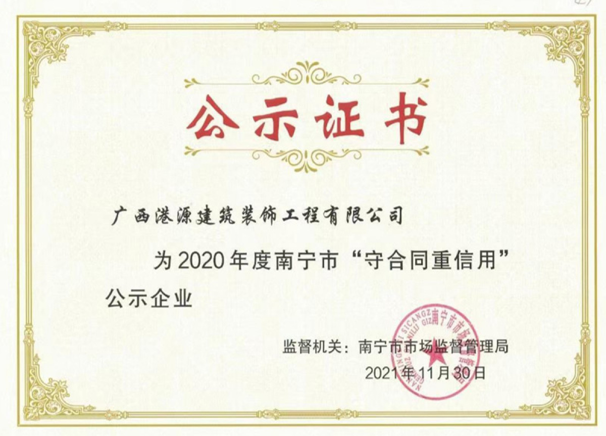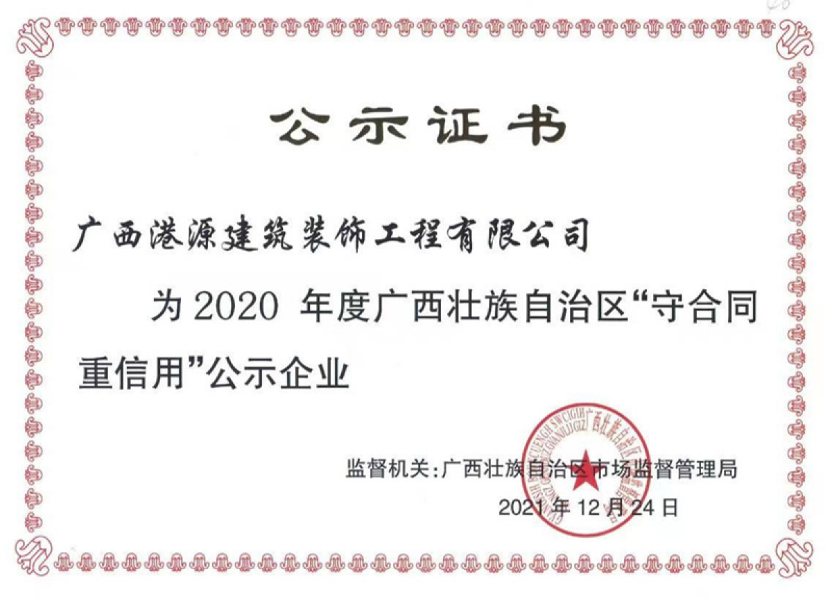 2020 年度广西壮族自治区"守合同重信用"公示企业