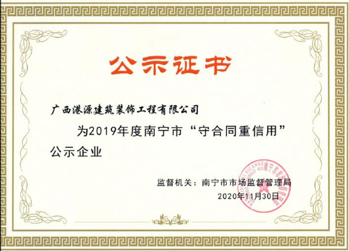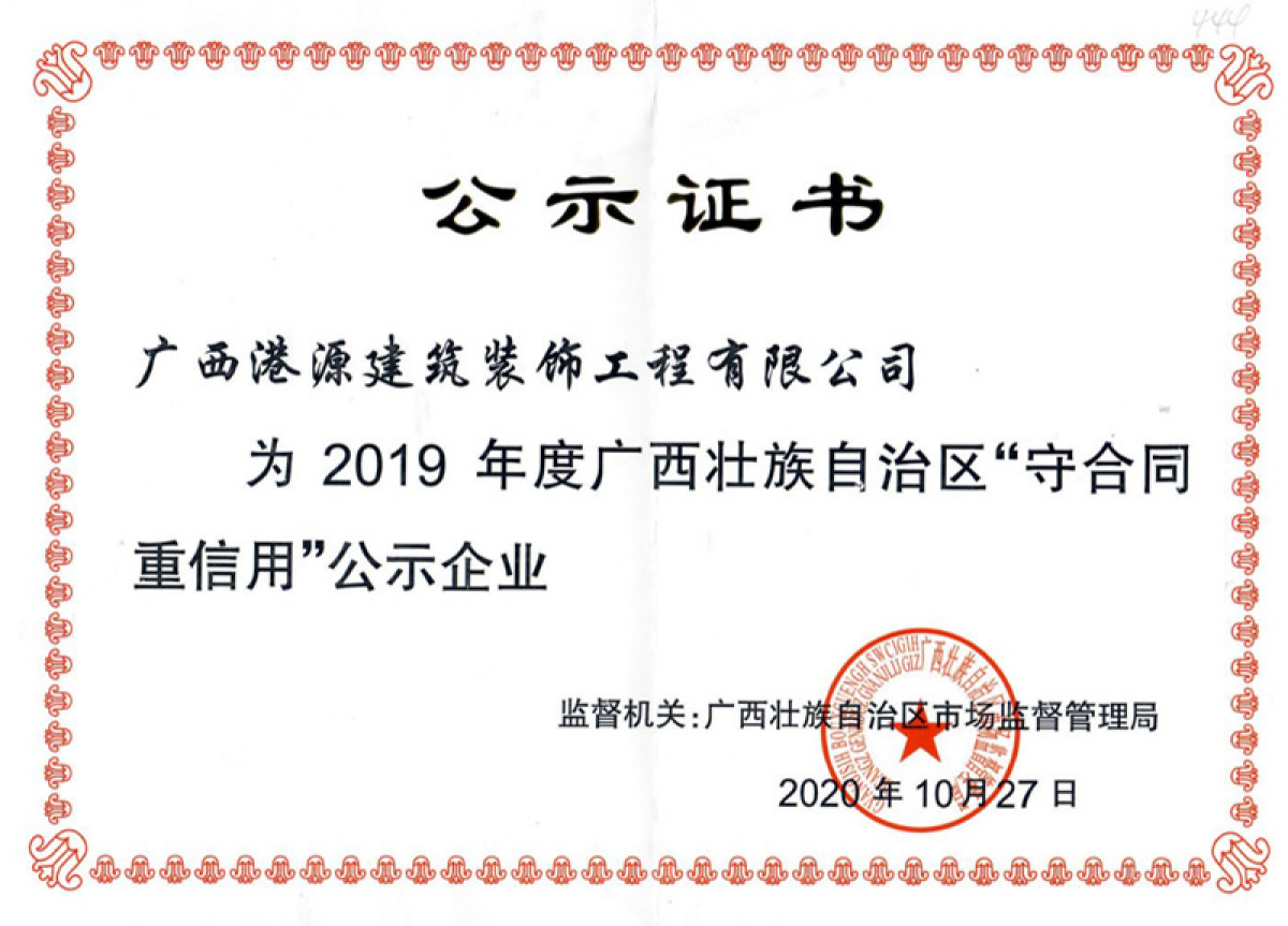 2019年度广西壮族自治区"守合同重信用"公示企业