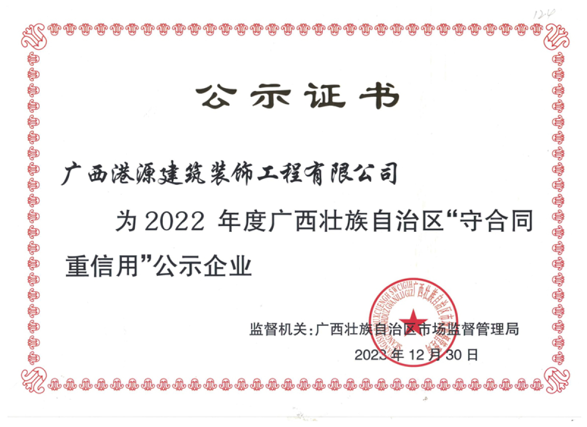 2022 年度广西壮族自治区"守合同重信用"公示企业
